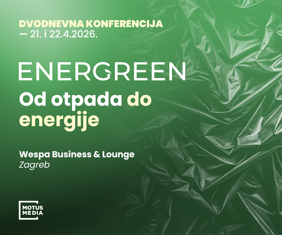21. i 22. travnja 2026. u Zagrebu će se održati dvodnevna konferencija „ENERGREEN – Od otpada do energije“ u organizaciji Energreen portala i Motus Media. Dvodnevni program održat će se u WESPA Business & Loungeu, u sklopu Green Gold centra na Radničkoj cesti 50. Učešće na konferenciji je besplatno, a svi zainteresirani trebaju prethodno popuniti online prijavu. Prijava je obavezna radi obezbjeđenja mjesta, s obzirom na ograničen kapacitet dvorane i organizacione zahtjeve događaja.