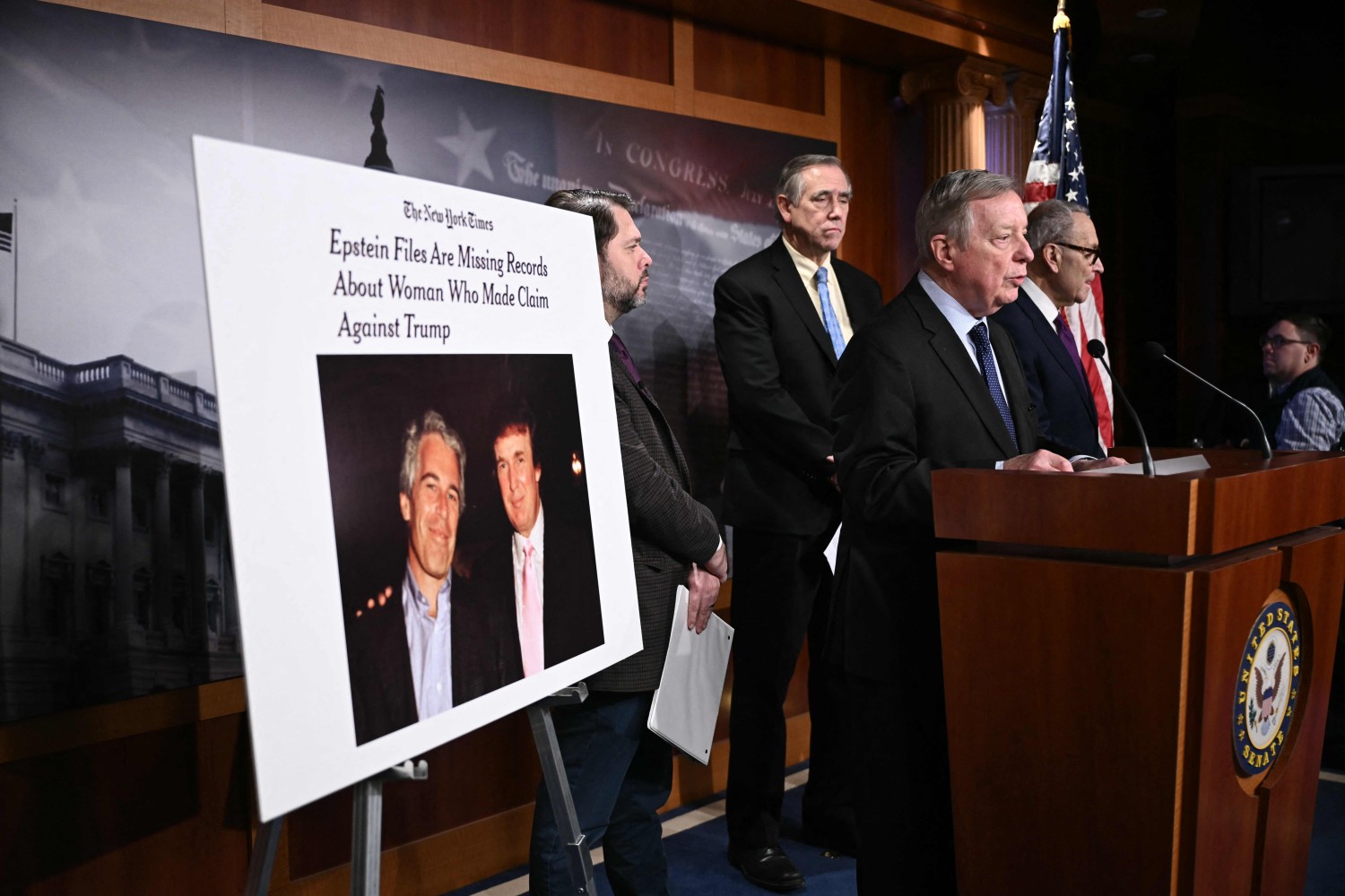 Demokrate također optužuju Trumpovo Ministarstvo pravde da je uskratilo svjedočenje ženi koja je optužila Trumpa za seksualno zlostavljanje kada je bila maloljetna. Ministarstvo pravde saopštilo je da pregleda materijal i da će ga objaviti ako bude potrebno. Ministarstvo je ranije upozorilo da objavljeni materijal uključuje neosnovane optužbe i senzacionalističke tvrdnje o Trumpu, a vlasti ga nisu optužile ni za kakve zločine vezane za Epsteina, koji je preminuo u zatvoru 2019. godine.