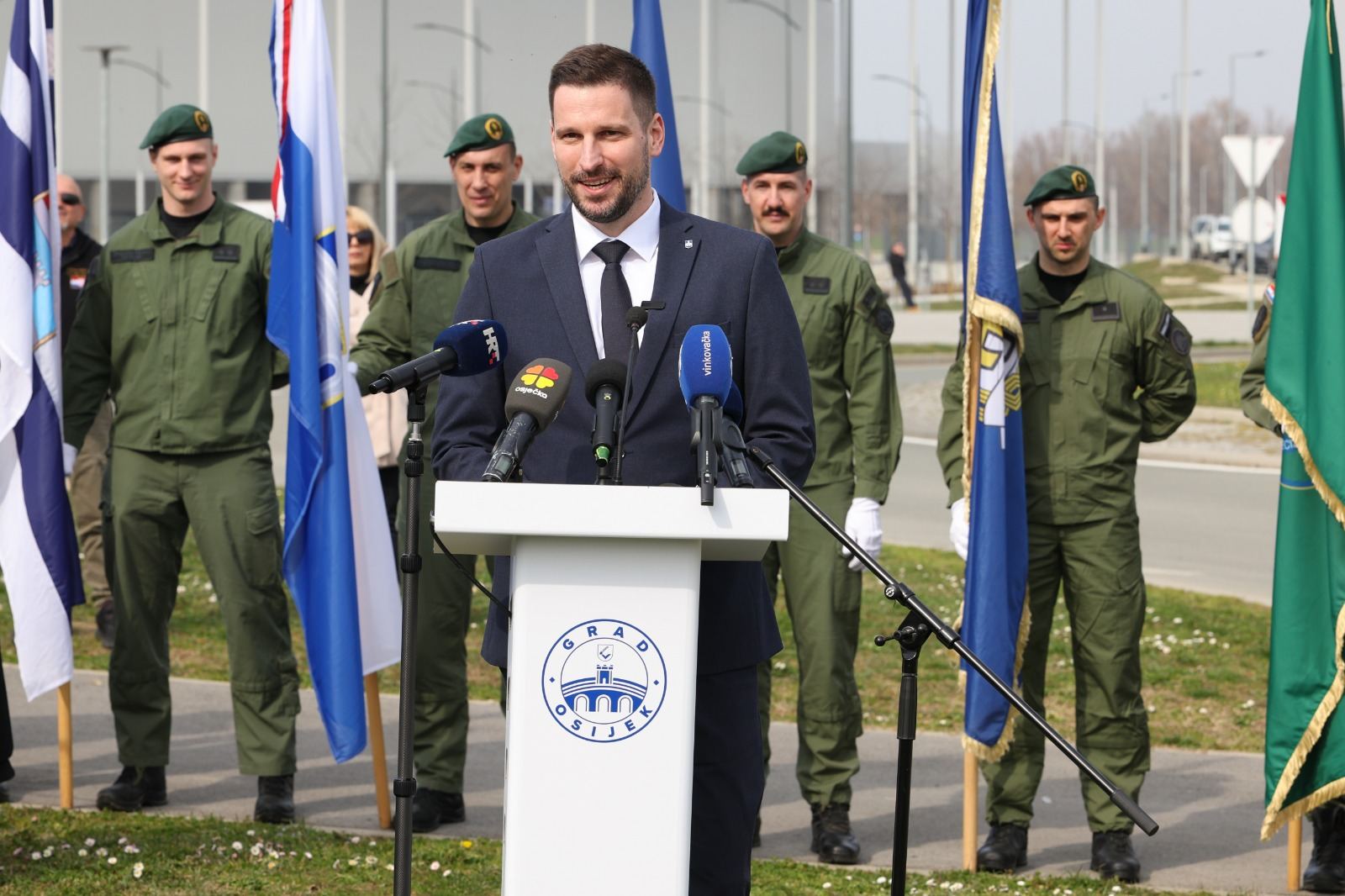 “Danas, na 35. godišnjicu osnivanja Specijalne jedinice policije ‘Orao’ Osijek, otkrivamo ulicu koja će zauvijek nositi ime legendarne postrojbe koja je dala velike žrtve u obrani našeg grada i stvaranju hrvatske države. Nažalost, 19 pripadnika je položilo svoje živote, mnogi su ranjeni, a Osijek to nikada neće zaboraviti. Naglasio je da je Osijek zahvaljujući braniteljima ostao nepokoren grad.