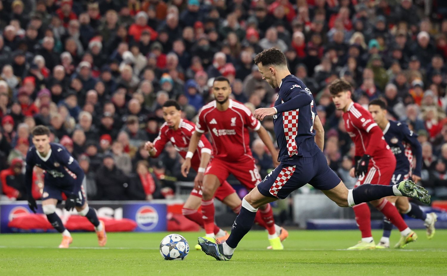 Gosti iz Ajndhovena su u šestoj minuti potvrdili da je Liverpool u velikoj krizi igre i rezultata. Dosuđen je jedanaesterac za PSV, a hrvatski reprezentativac bio je vrlo siguran udarcem sa bijele tačke Ivan Perišić za goste 1:0. Liverpul nije dugo zaostajao, ali je u 16. minuti Szoboszlai bio strijelac za 1:1. Vrlo brzo na početku nastavka PSV dolazi do prednosti, strijelac je bio u 56. minuti Til. U 73. Liverpul je upao u još veću rupu. Postigao je gol za 3:1 Driouech koji je samo nekoliko minuta ranije zamijenio Perišića na terenu, a sve je zaključeno drugim golom Driouecha u 91. minuti za konačnih 4:1 prvaka Holandije.